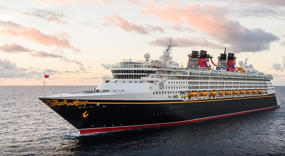 This 84,000-ton vessel sister to the Disney Magic sails to exciting destinations around the globe while treating Guests to the signature amenities and delightful surprises Disney is known for.