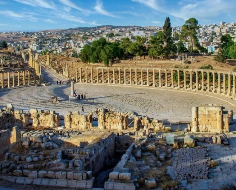 Jerash is a city in Jordan, north of the capital Amman. Inhabited since the Bronze Age, it’s known for the ruins of the walled Greco-Roman settlement of Gerasa just outside the modern city. These include the 2nd-century Hadrian’s Arch, the Corinthian columns of the Temple of Artemis and the huge Forum’s oval colonnade. The Jerash Archaeological Museum displays artifacts excavated from the site.