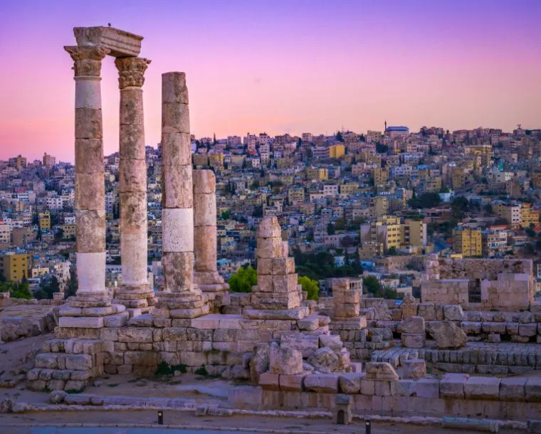 Amman, the capital of Jordan, is a modern city with numerous ancient ruins. Atop Jabal al-Qala’a hill, the historic Citadel includes the pillars of the Roman Temple of Hercules and the 8th-century Umayyad Palace complex, known for its grand dome. Built into a different downtown hillside, the Roman Theater is a 6,000-capacity, 2nd-century stone amphitheater offering occasional events.