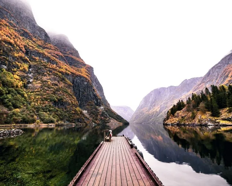 Flåm is a village in southwestern Norway, in an area known for its fjords. It sits at the end of Aurlandsfjord, a branch of the vast Sognefjord. The dramatic Stegastein viewing platform juts out high above the Aurlandsfjord. South of Flåm Harbor, the 17th-century wooden Flåm Church lies in the valley. The Flåm Railway offers valley and waterfall views as it climbs to a station on the Hardangervidda plateau.
