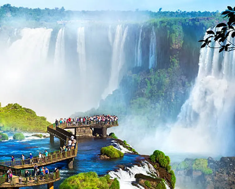 Breakfast at the hotel. Your trip will not be complete if you don’t experience the mesmerizing natural beauty of the Iguassu from the Argentinian side of the falls. Departure from hotels ahead to Argentina side with a quick stop at customs check out. After that, the tour continues to the Tancredo Neves Bridge over the Iguassu River, which separates the border between Argentina and Brazil. Once in Argentina, a scenic highway up to the Argentine Iguassu Park is taken from where the visit of the Argentinean Falls at Porto Canoas, which gives the access to the very brink of the awe-inspiring Devil’s Throat, largest of the Argentinean Falls, including the San Martin Falls. On the way back from the falls a stop at the “Three Borders” Brazil, Argentina and Paraguay meet.