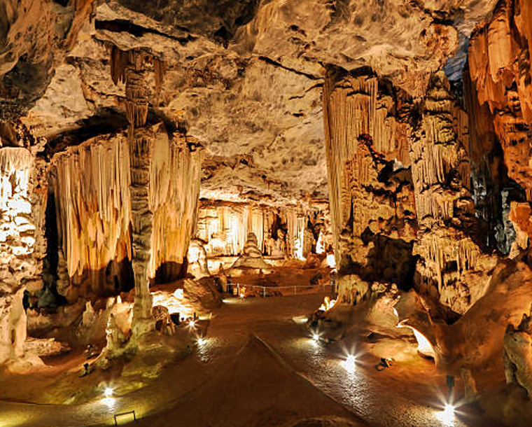 Cango Caves-The spectacular Cango Caves are a subterranean wonderland of magnificent stalactite and stalagmite rock formations that attracts thousands of visitors annually. They extend more than two kilometres into the Swartberg Mountains and visitors can take guided tours that wind through narrow passageways and steep stairways linking the massive caverns.