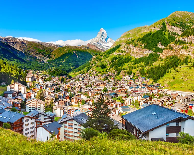 Breakfast at the hotel. Prepare for checkout and make youyr way to the train station. Rail journey through the wonderful Bernese Oberland to the Valais, either via the Lötschberg base tunnel directly to Visp and further to Zermatt. Or by the RegioExpress Lötschberger – the train with big windows using the traditional scenic Lötschberg line to Brig and continue your journey to Zermatt, the famous resort at the foot of the Matterhorn.