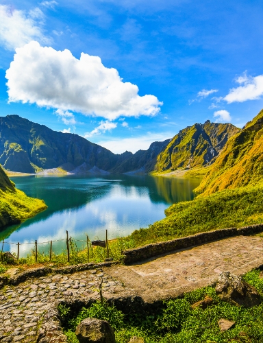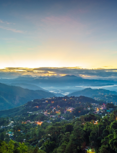 Baguio on the Philippines’ Luzon island, is a mountain town of universities and resorts. Called the “City of Pines,” it’s particularly popular in summer due to unusually cooler weather. At its center is Burnham Park, with gardens and a lake. Nearby, Baguio Cathedral, completed in 1936, has a rose-hued exterior. The main thoroughfare is Session Road, lined with shops, restaurants and entertainment options.