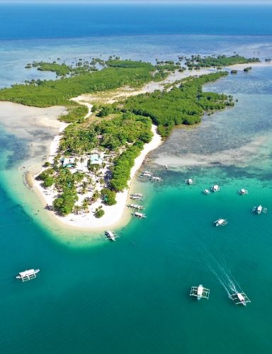 Boracay is a small island in the central Philippines. It's known for its resorts and beaches. Along the west coast, White Beach is backed by palm trees, bars and restaurants. On the east coast, strong winds make Bulabog Beach a hub for water sports. Nearby, the observation deck on Mount Luho offers panoramic views over the island. Offshore, coral reefs and shipwrecks are home to diverse marine life.