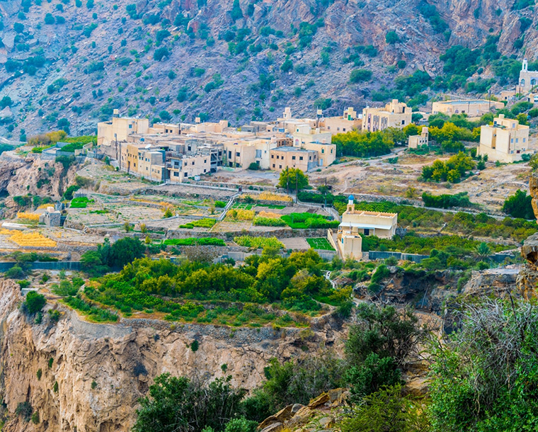 Leaving Birkat Al Mouz behind you, you will begin the climb up Jabal Akhdar Mountain. At the top you will visit Wadi Bani Habib to see one of the remote villages and plantations. At first glance the village looks in pretty good shape for an abandoned village, however as you get closer you will notice that nobody is home, rooves have collapsed, walls crumbled and doors completely missing. The village is empty and just waiting to be explored. Follow your guide as they take you through the terrace gardens to view this intriguing location. Appreciate the cool climate and scenic surroundings before driving back to Muscat.