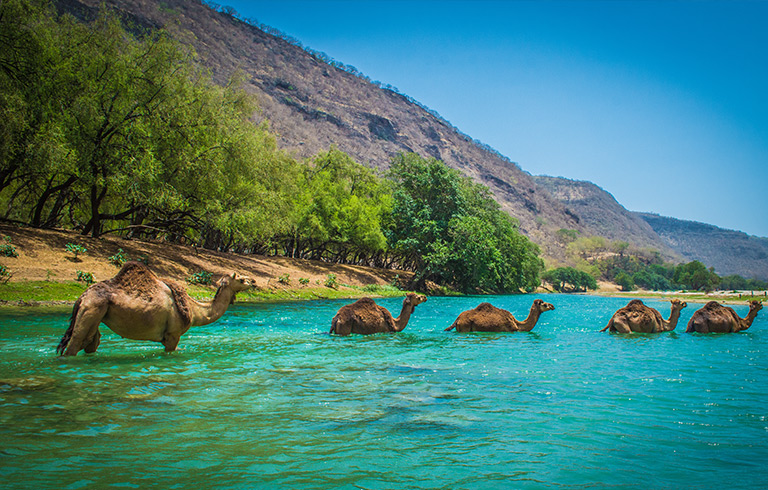 We then visit Muttrah Souq – one of the most popular souqs in the Middle East. Take a walk in its labyrinthine alleyways beckoning with a myriad of merchandise, from imported fabrics to exotic Oriental spices, perfumes and richly handcrafted artefacts. A visit to this frenetic, pulsating hub of Muscat’s old quarter makes for a delightful experience. Here, scents of exotic Arabian perfumes and spices float through the air. Other shops specialise in famous Omani khanjars (daggers), antiques, traditional silver jewellery, and handicrafts in copper, camel bone, wood, leather and hand-made Omani costumes.