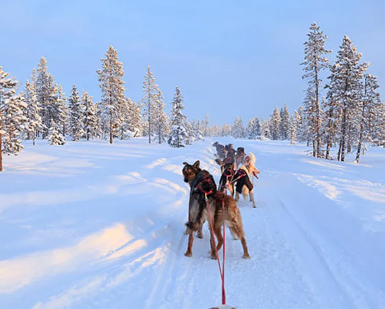 In the early evening, you will ride in a minibus to Abisko, about 100 km (60 miles) from Kiruna, for an unforgettable evening of natural beauty and gourmet cuisine. The night begins with a chairlift ride up a mountainside to the Aurora Sky Station in Abisko National Park, offering an unspoilt view of the stars above. At the restaurant, indulge in a delicious, Nordic-inspired 4-course dinner, followed by a guided tour to learn about the spectacular northern lights and how to see them. Afterwards, take a short (900 m) walk to your hotel. Please note 2 people share one sled and take turns driving.