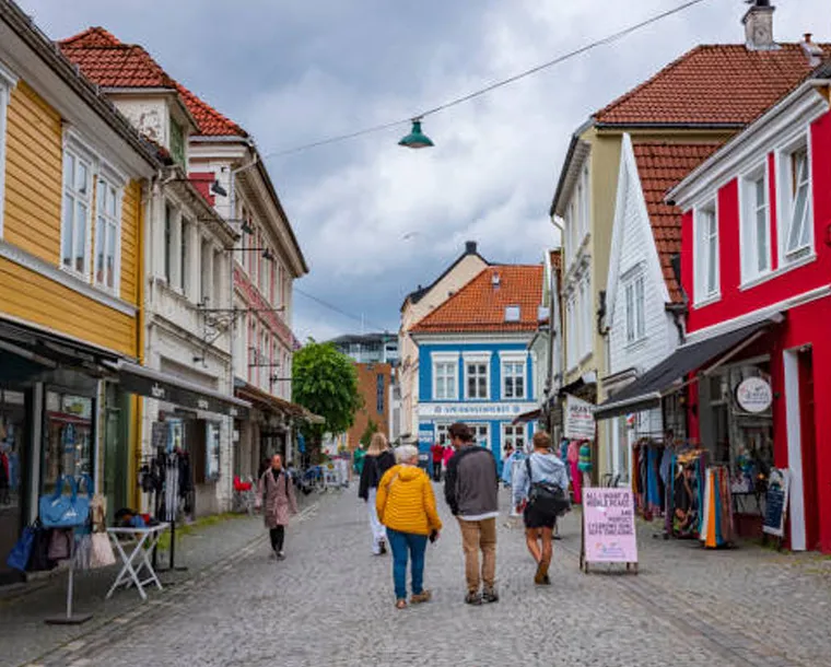 Bergen is a city on Norway’s southwestern coast. It's surrounded by mountains and fjords, including Sognefjord, the country’s longest and deepest. Bryggen features colorful wooden houses on the old wharf, once a center of the Hanseatic League's trading empire. The Fløibanen Funicular goes up Fløyen Mountain for panoramic views and hiking trails. The Edvard Grieg House is where the renowned composer once lived.