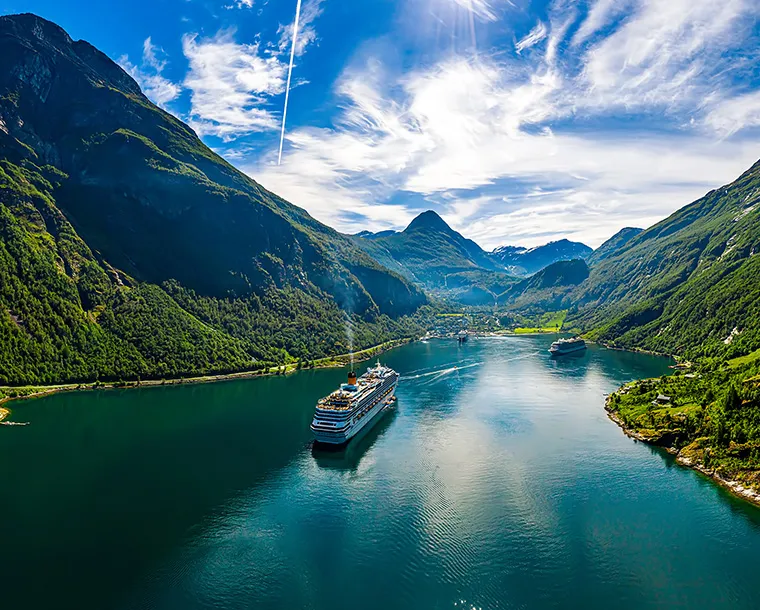 Norway- Norway is a Scandinavian country encompassing mountains, glaciers and deep coastal fjords. Oslo, the capital, is a city of green spaces and museums. Preserved 9th-century Viking ships are displayed at Oslo’s Viking Ship Museum. Bergen, with colorful wooden houses, is the starting point for cruises to the dramatic Sognefjord. Norway is also known for fishing, hiking and skiing, notably at Lillehammer’s Olympic resort.