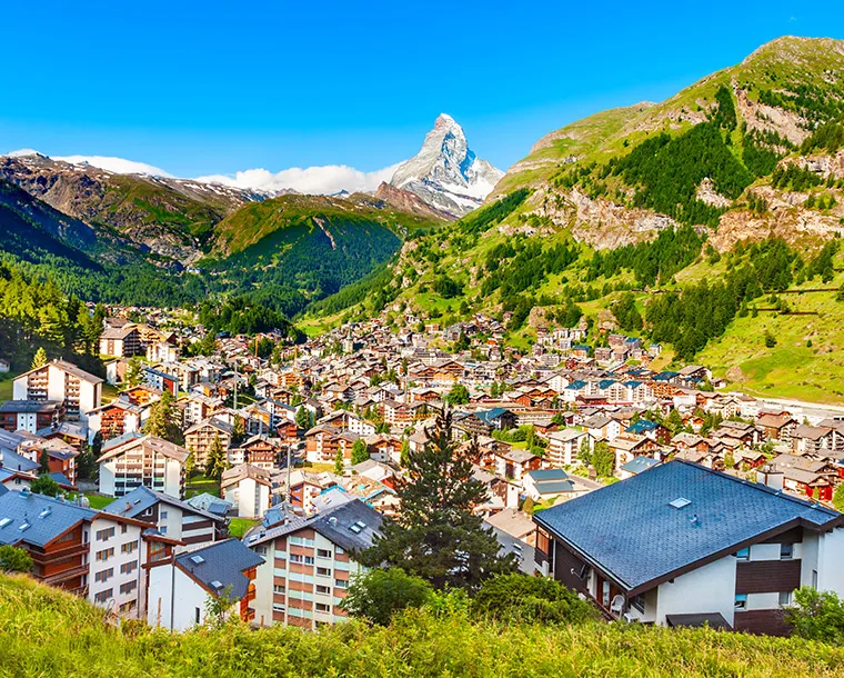 Zermatt, in southern Switzerland’s Valais canton, is a mountain resort renowned for skiing, climbing and hiking. The town, at an elevation of around 1,600m, lies below the iconic, pyramid-shaped Matterhorn peak. Its main street, Bahnhofstrasse is lined with boutique shops, hotels and restaurants, and also has a lively après-ski scene. There are public outdoor rinks for ice-skating and curling.